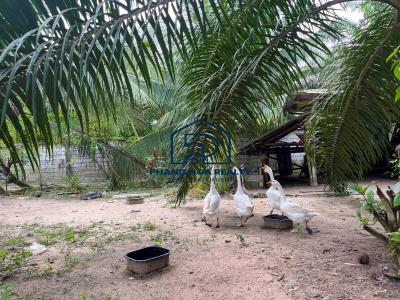 The private, detached house feels like a warm home. built on land covering an area of nearly 4 Rai. and a living area of 120 square meters. A garden's lush green surrounds you. The house has 3 bedrooms, 2 bathrooms, a living area with a huge sofa and a TV, and a kitchen and dining area that connect together. An open plan living area to enjoy with the scent of local life away from the traffic of the city. Outside, there is one storage room and two covered parking spaces. Raising the geese on the palm plantation are over five years old.