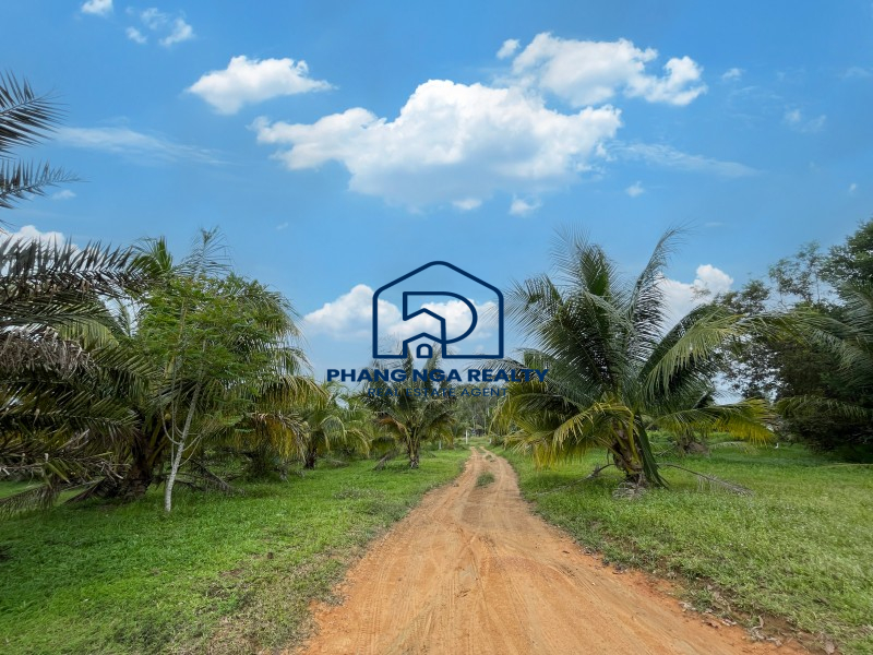 5 Rai of land is for sale in Natai, Phangnga. The land comes with over 30 coconut trees. Including the garden house with carport. The appearance of the plot is flat and gradually sloped. Surrounded by green, lush, and expansive views. The public road, electricity, and water are accessible from the land. Natai beach is only 1.5 kilometers away, and khokkoi town is nearby. The plot width and length are approximately 95 and 85 meters, respectively. Suitable for homestays, villas, and resorts