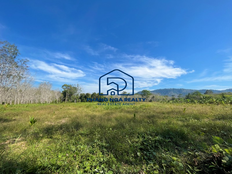 6 Rai of small coconut with mountain view close to Natai beach for sale in Takua tung, Phangnga. This plot avalible on title deed. 6-meter public road reach to the plot. The plot has a width approximately 58 meters next to public road and a length of about 173 meters. Spacious plot with beautiful mountain view. Only 6 mins away to Natai beach. Perfect for retirement, resort, villa and vacation homes.