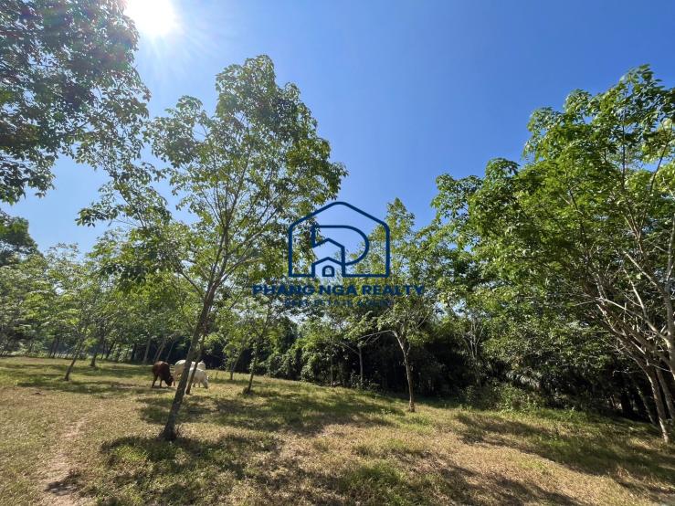 9.5-rai rubber plantation for sale near Bo Dan Beach, Thai Mueang, and Phang Nga. This land is unique in that it has cool breezes and a peaceful atmosphere in the midst of a friendly community. Experience the way of life of the local fishermen. Access to electricity and water. Next to public roads. The land area is 9-2-89 rai, and the area is plain. North side next to the public canal Located in an area that is convenient for driving to the end of the mine. And it is close to many natural attractions, such as sandy beaches and waterfalls. People are not crowded, and they are surrounded by abundant nature as well. A place to stay It can relieve stress very well. Suitable for a luxury vacation home, check-in point, accommodations, and coffee shop, it can be said that it is truly relaxing to refresh the body with nature.