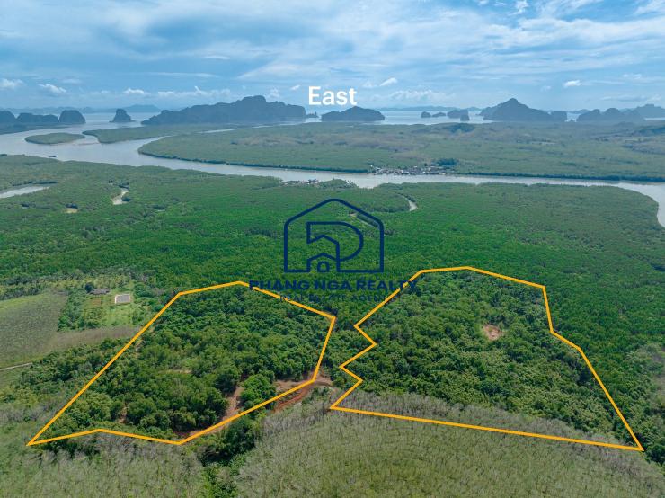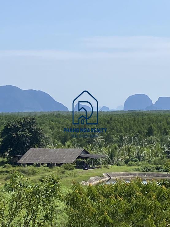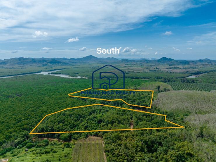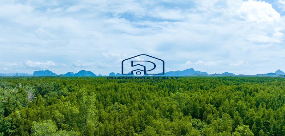 85 rai with an amazing mountain view is land for sale in Takua Thung, Phangnga. The land is surrounded by green mangrove forests. There is a small river flowing through two pieces of land. The land is close to the community that lives on the island, which is a fishing village. Chanote title deeds Electricity and water are accessible. It is a land full of fascinating natural atmosphere, including people, ways of life, and culture that many people may not yet have experienced. The land is private, and people are not crowded. This location is suitable for building luxury villas, holiday resorts, homestays, water business projects, and new landmarks. Do eco-tourism activities like canoeing and enjoy the view of the mangrove forest, the high limestone peaks rising above the water, and the light of the evening sunset.