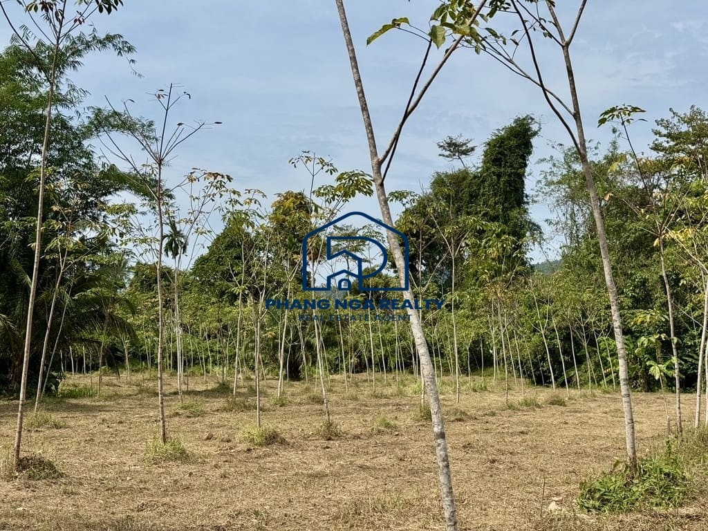 Discover a rare opportunity to invest in a pristine 5-rai rubber plantation land tucked away in the serene environs of Thaimueang, Phangnga. This expansive property boasts lush greenery, panoramic views, and is bordered by a large public canal ensuring year-round flowing water. The temperate climate, cooled by gentle breezes, enhances the natural charm of this location.