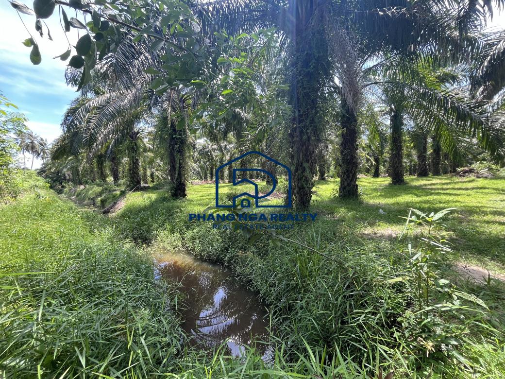 Nearly 15 Rai of Palm plantation land for sale near Wat Tha Sai Thai Mueang Beach, Phangnga. This tranquil land parcel, accessible via a 4-meter-wide public road, comes with Chanote (NorSor 3 Gor) title deed, electricity, and water supply. A standout feature is its 330-meter canal frontage, offering a cool, refreshing atmosphere with constant breezes. Located near unseen tourist spots like Khum Nam Thathang, Bordan Beach, and Thatai Beach, and close to Thaimueang Old Town and other amenities, this land is perfect for building a private home, vacation retreat, wellness resort, or luxury villa for investment or rental purposes.