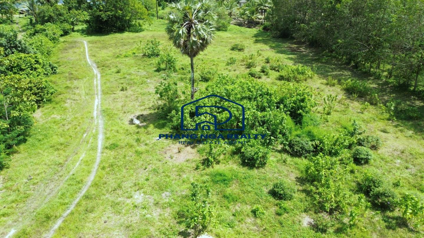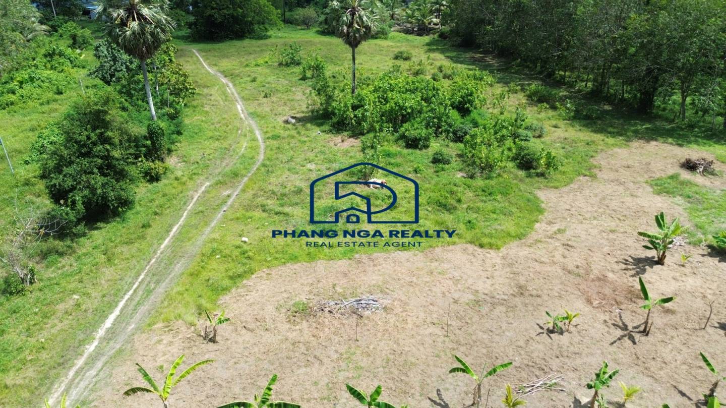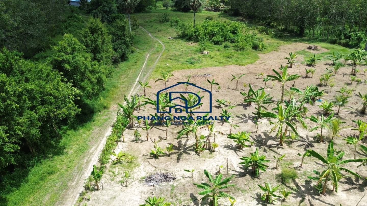 This 5-rai land in Pa Khlok, Phuket, features flat terrain with a wide frontage on a public concrete road and an 8-meter-wide dirt road running along its length. Located in Pa Khlok, Phuket, a well-equipped community with markets, shops, and tranquil surroundings, this land is ideal for building a residence or investing in property development. The land is planted with banana trees, palm trees, and cassava, offering stunning mountain views on both sides, characteristic of Pa Khlok, Phuket.