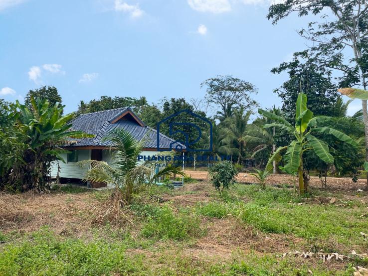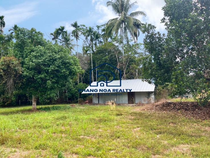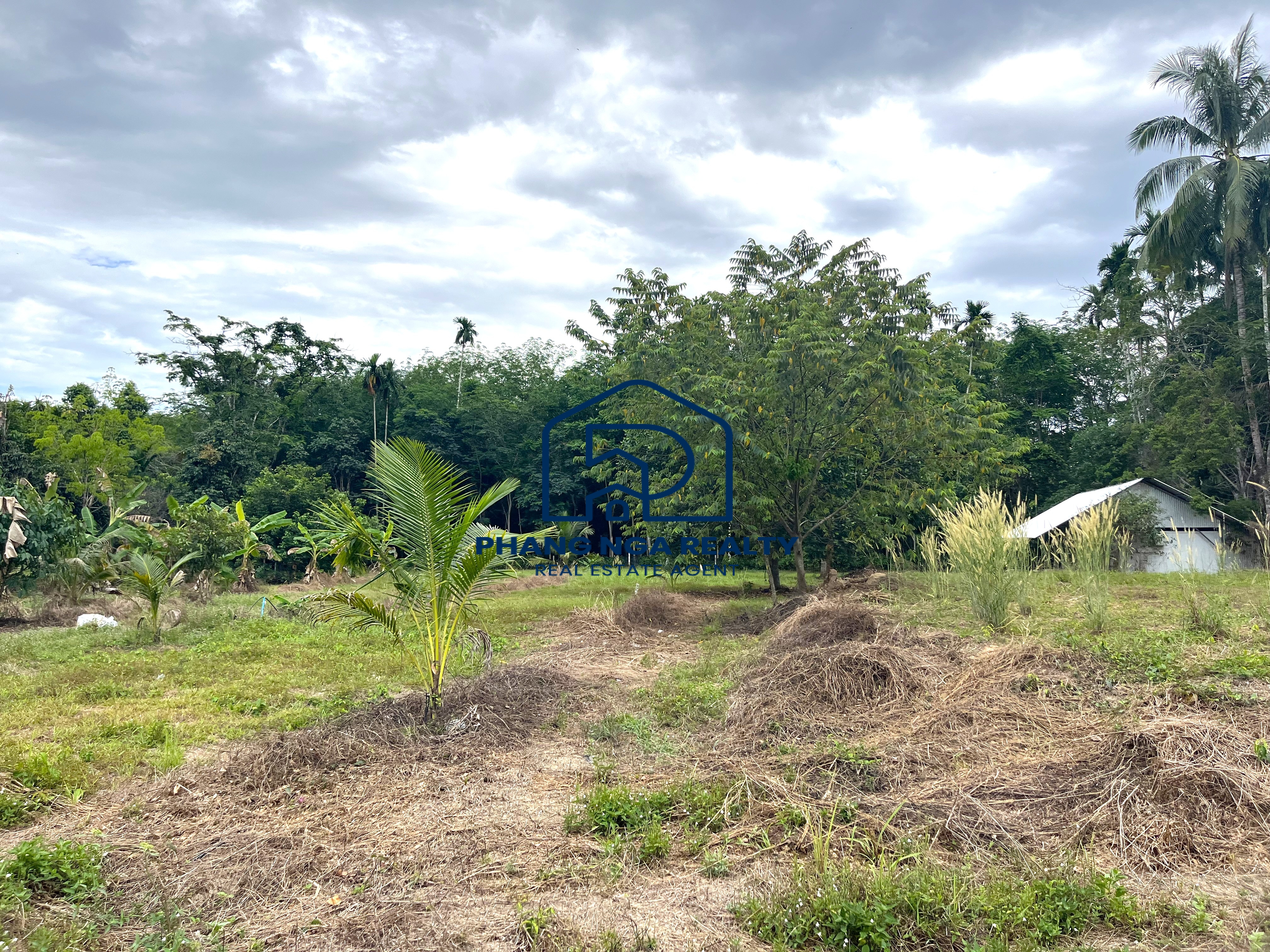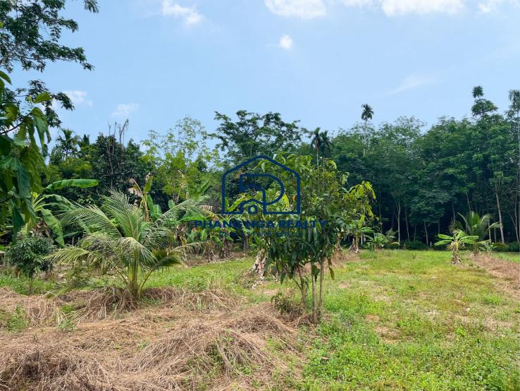 2 rai land with garden house for sale in Thai Mueang, Phangnga. A fantastic opportunity to own land with a garden house in Thai Mueang, Phangnga. This 2 rai property features a spacious open-plan house, surrounded by a peaceful natural setting. The land is already cultivated with coconut, jackfruit, banana, longkong, sato, and mango trees, with an irrigation system installed throughout. At the back, there is a storage shed for wood, while the front faces a public concrete road, ensuring easy access. The property comes with a Chanote title deed, and both electricity and water are available. Located in Thai Mueang, Phangnga, this land is perfect for developing a private residence, vacation home, or mixed-use agricultural farm.