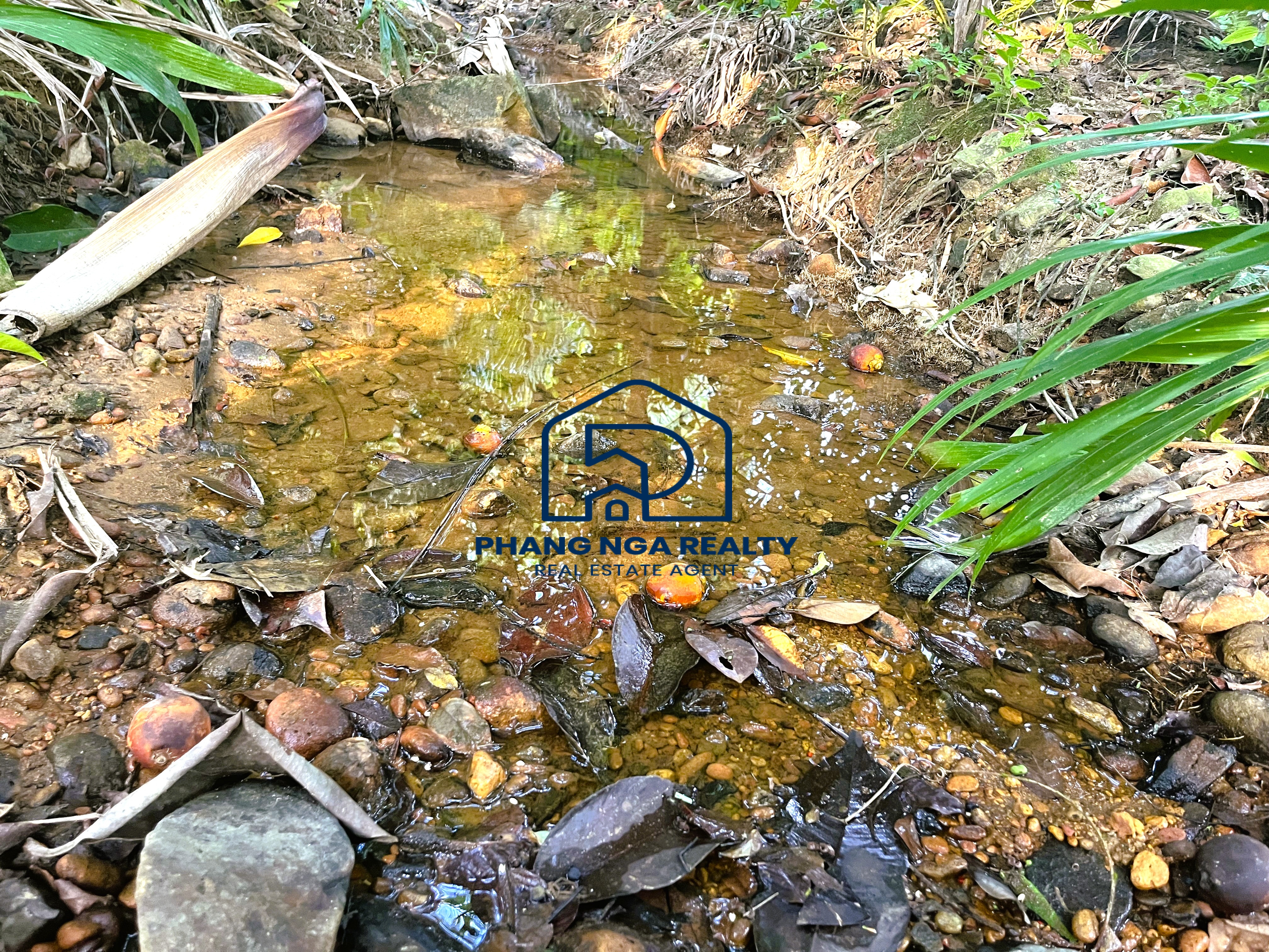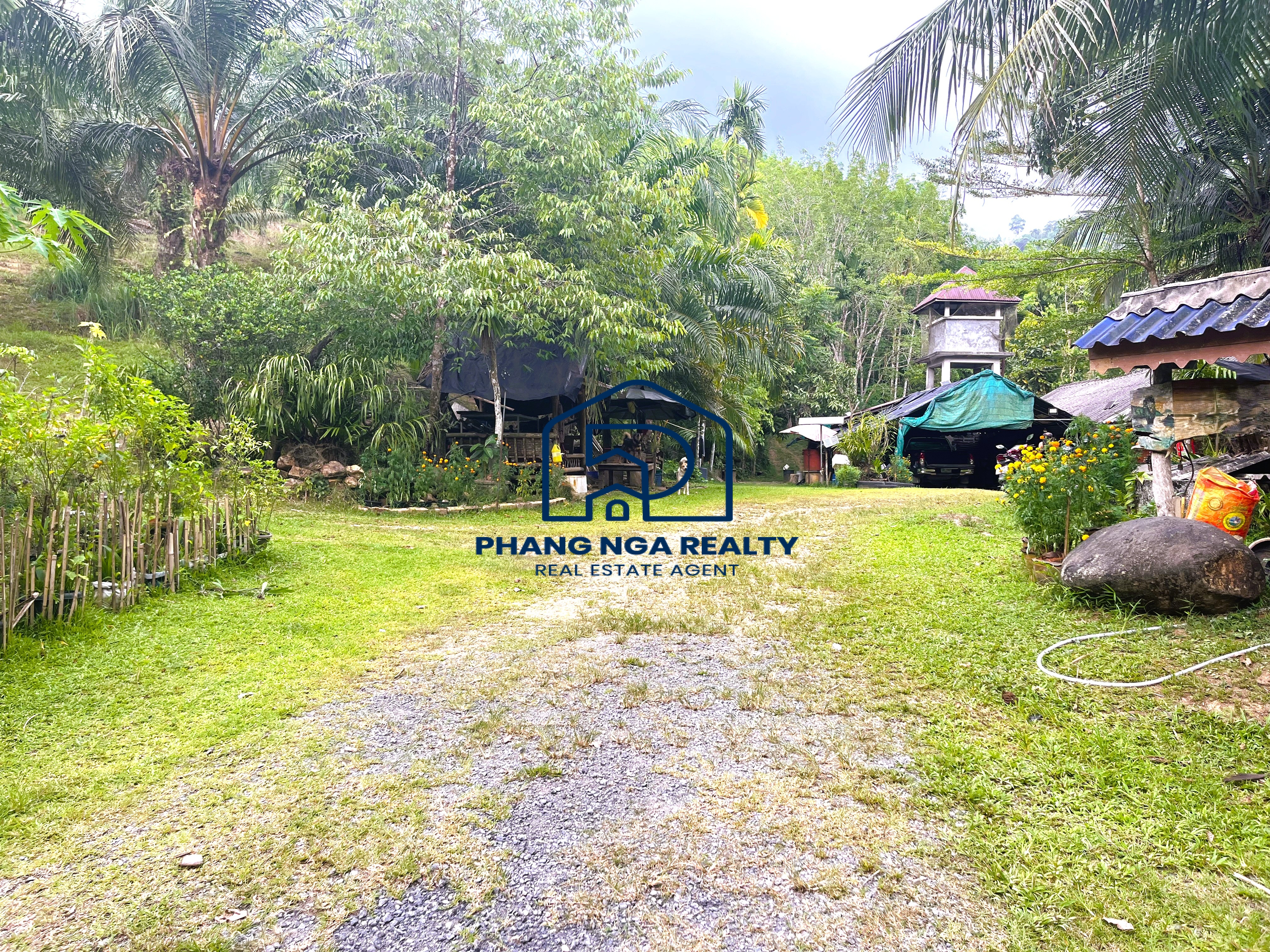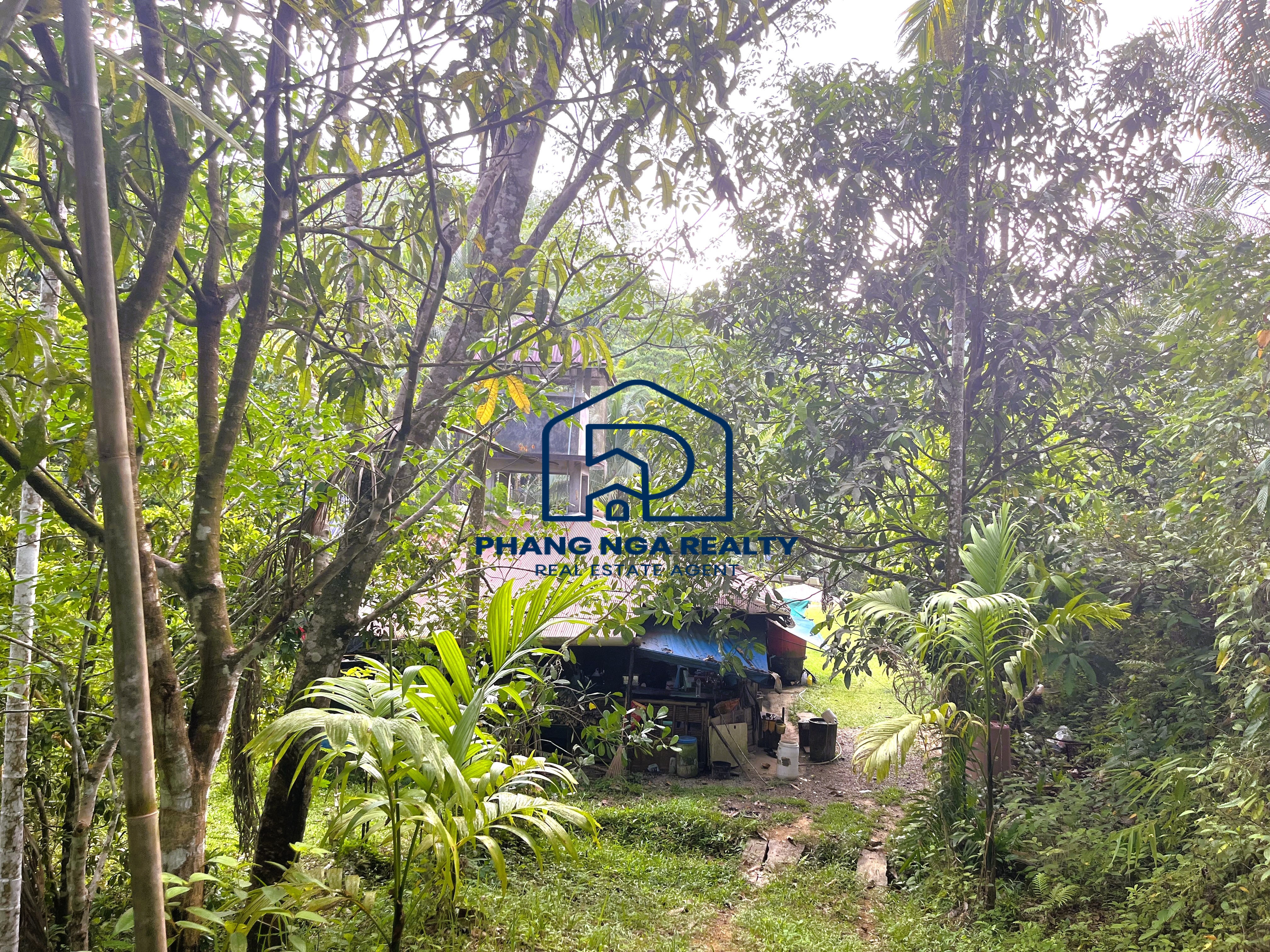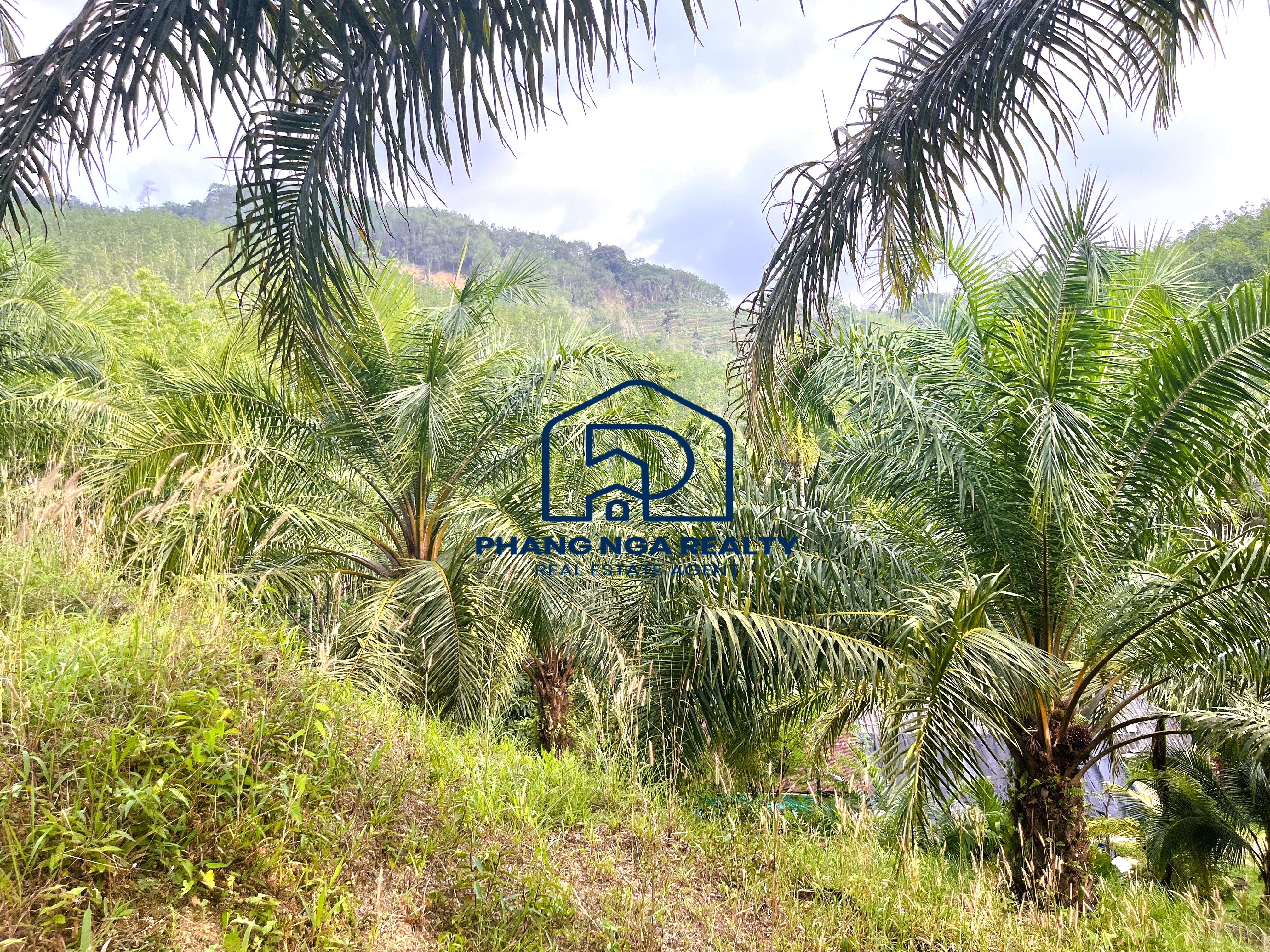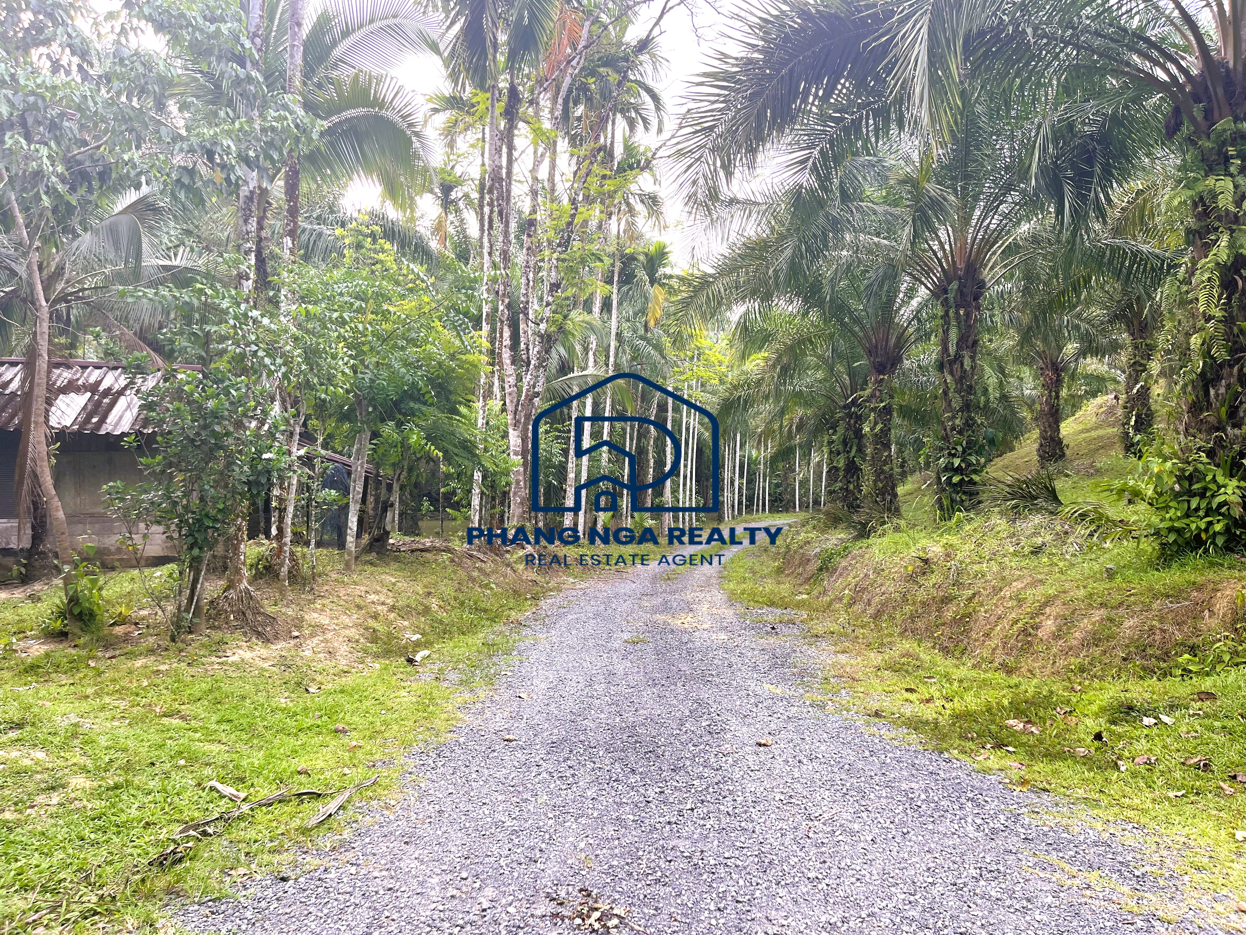 Nearly 25 rai of land with mountain view, farmhouse & public creek for sale in Thai Mueang, Phangnga. An excellent opportunity to own nearly 25 rai of scenic land with a farmhouse, mountain view, and access to a public creek in the peaceful and green surroundings of Thai Mueang, Phangnga. The land features flat and gently sloping areas, with three access roads. It's currently used for rubber plantations (around 3,000 trees) and over 200 palm trees. The property also includes a variety of fruit trees such as mangosteen, langsat, bitter bean (sator), lime, santol, and niang, plus garden vegetables along the fence. A simple farmhouse powered by solar energy is located on-site, with a public creek running along the property’s edge, enhancing the property's natural appeal. With two Chanote title deeds and an additional 2 rai with usufruct documentation, this land is ideal for establishing an organic farm, eco-friendly resort, homestay, or a tranquil private home in beautiful Thai Mueang, Phangnga.
