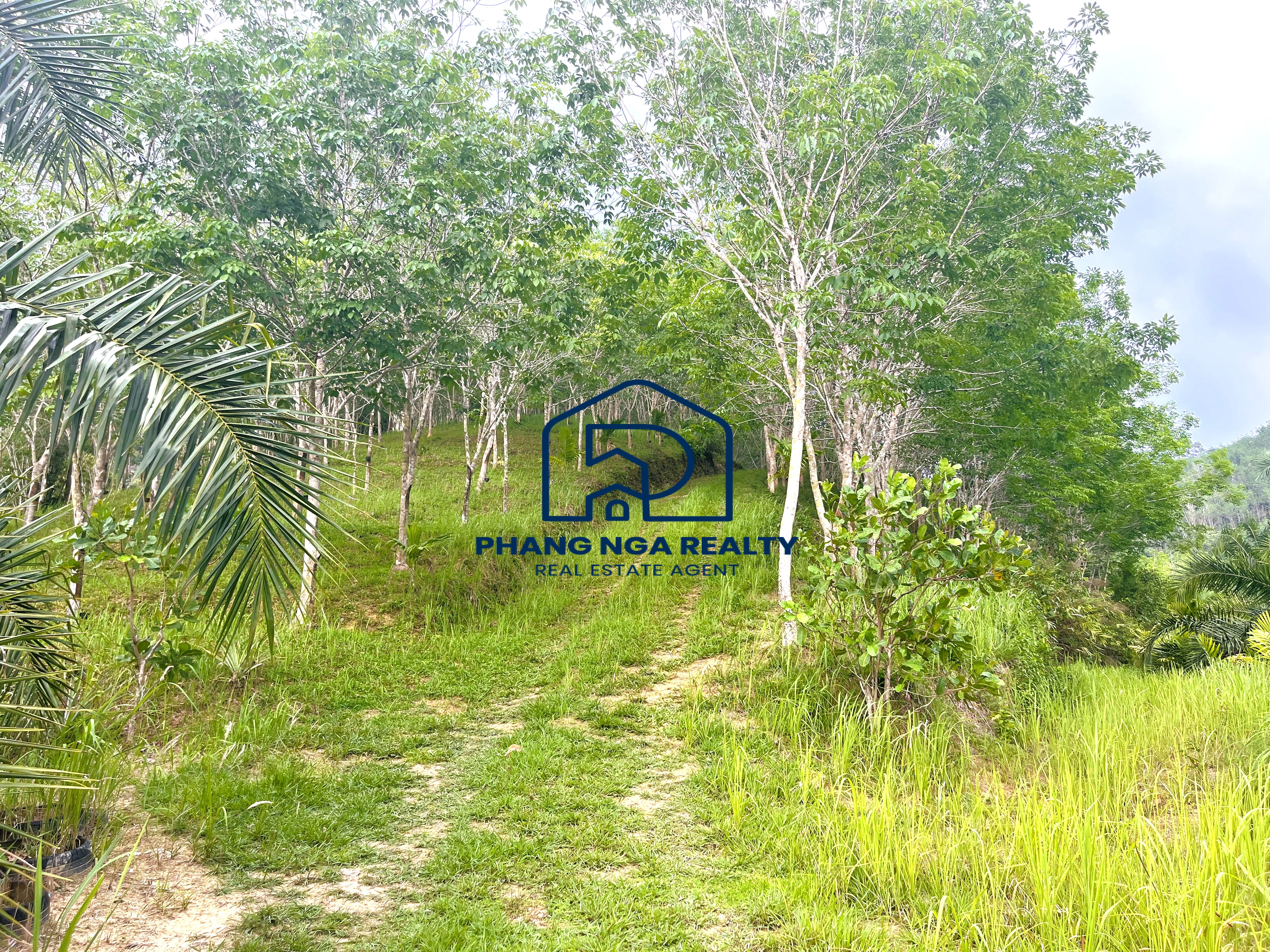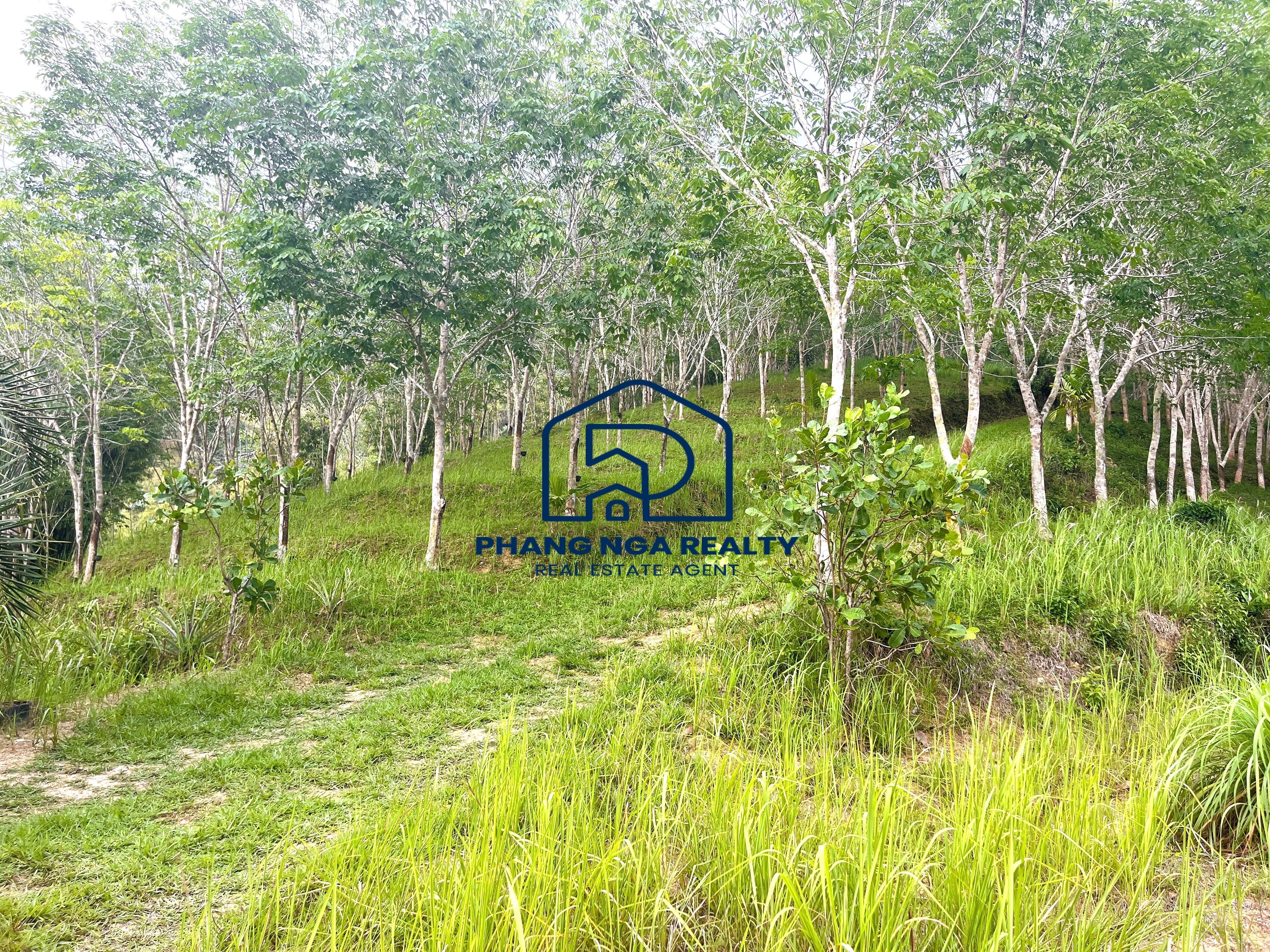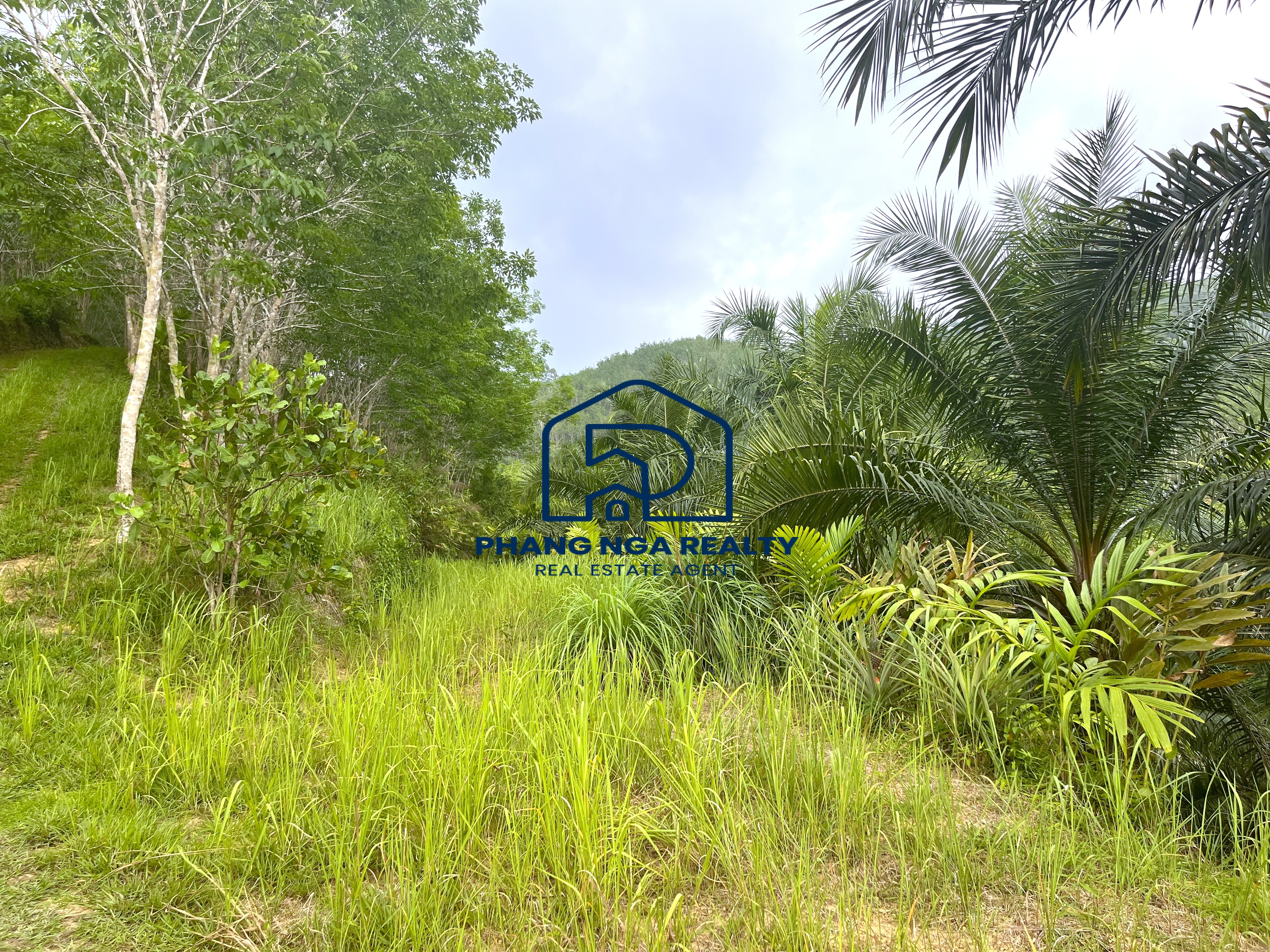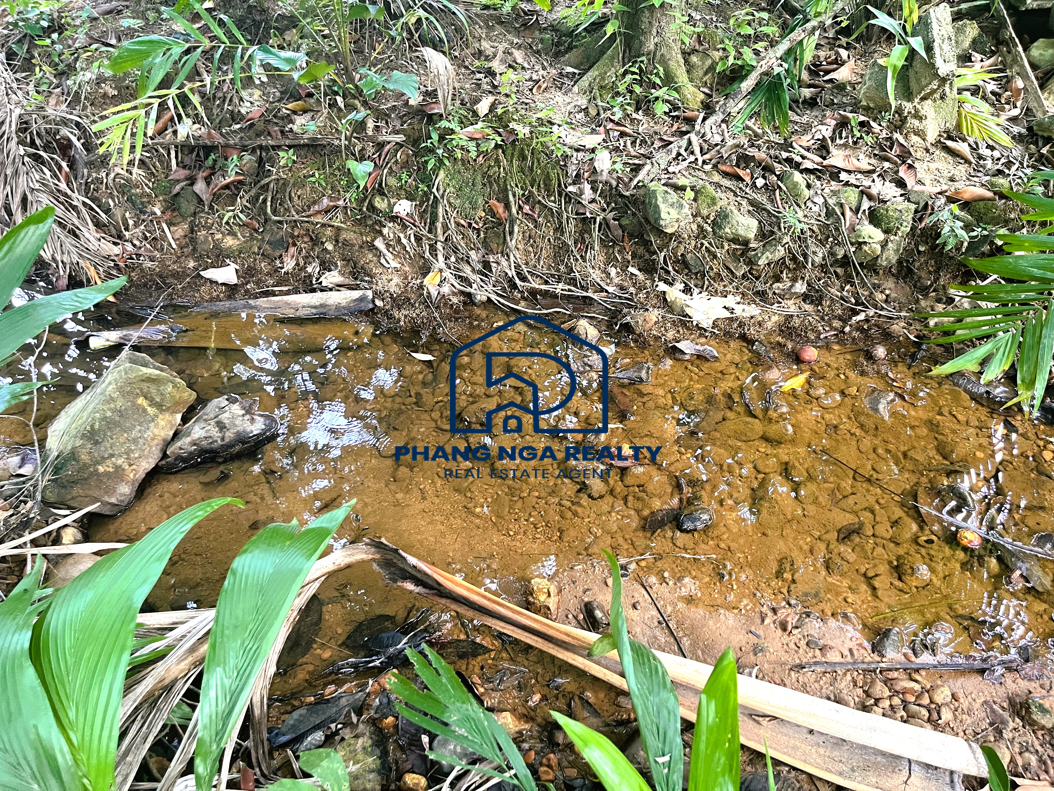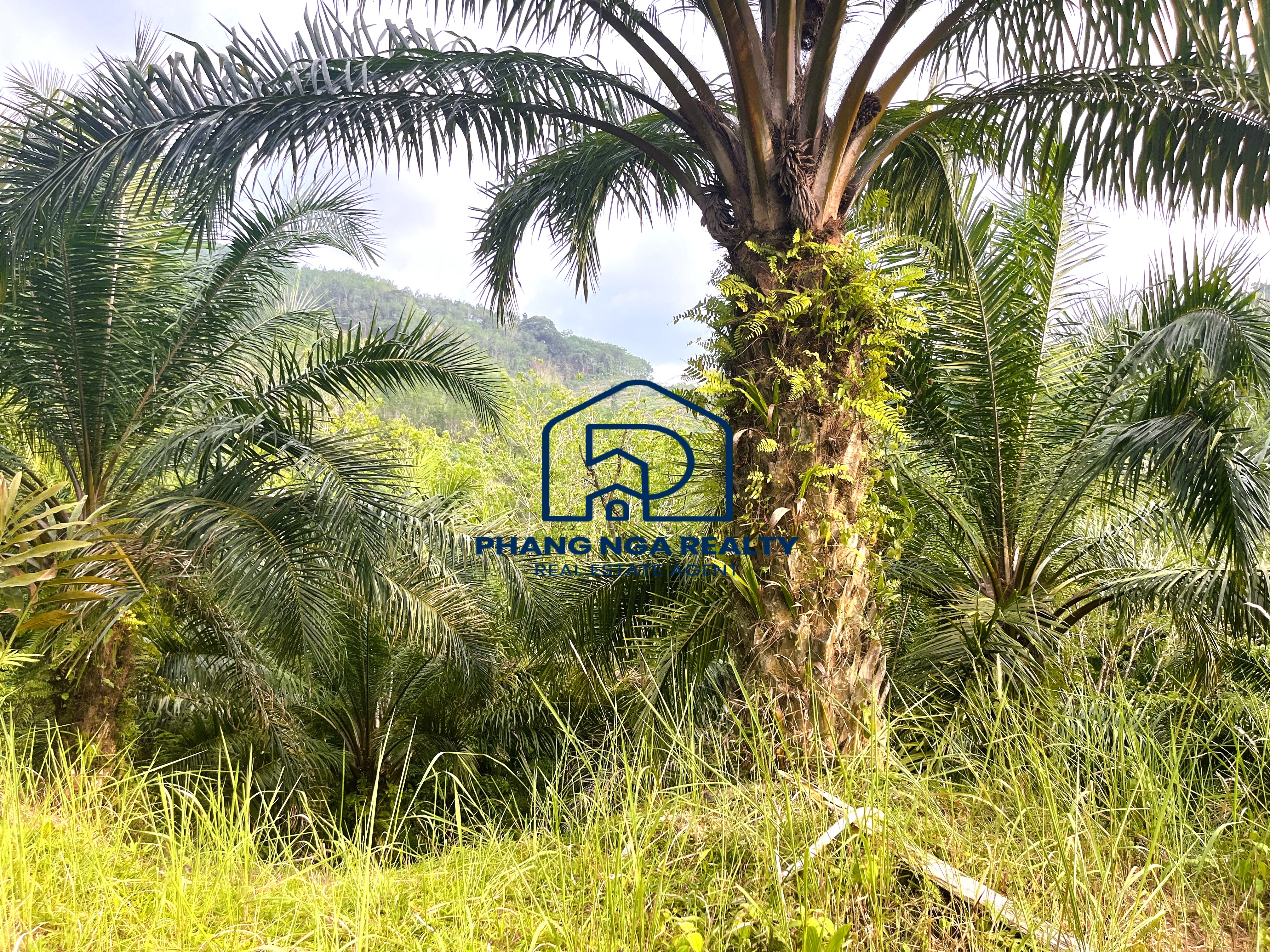 Nearly 25 rai of land with mountain view, farmhouse & public creek for sale in Thai Mueang, Phangnga. An excellent opportunity to own nearly 25 rai of scenic land with a farmhouse, mountain view, and access to a public creek in the peaceful and green surroundings of Thai Mueang, Phangnga. The land features flat and gently sloping areas, with three access roads. It's currently used for rubber plantations (around 3,000 trees) and over 200 palm trees. The property also includes a variety of fruit trees such as mangosteen, langsat, bitter bean (sator), lime, santol, and niang, plus garden vegetables along the fence. A simple farmhouse powered by solar energy is located on-site, with a public creek running along the property’s edge, enhancing the property's natural appeal. With two Chanote title deeds and an additional 2 rai with usufruct documentation, this land is ideal for establishing an organic farm, eco-friendly resort, homestay, or a tranquil private home in beautiful Thai Mueang, Phangnga.