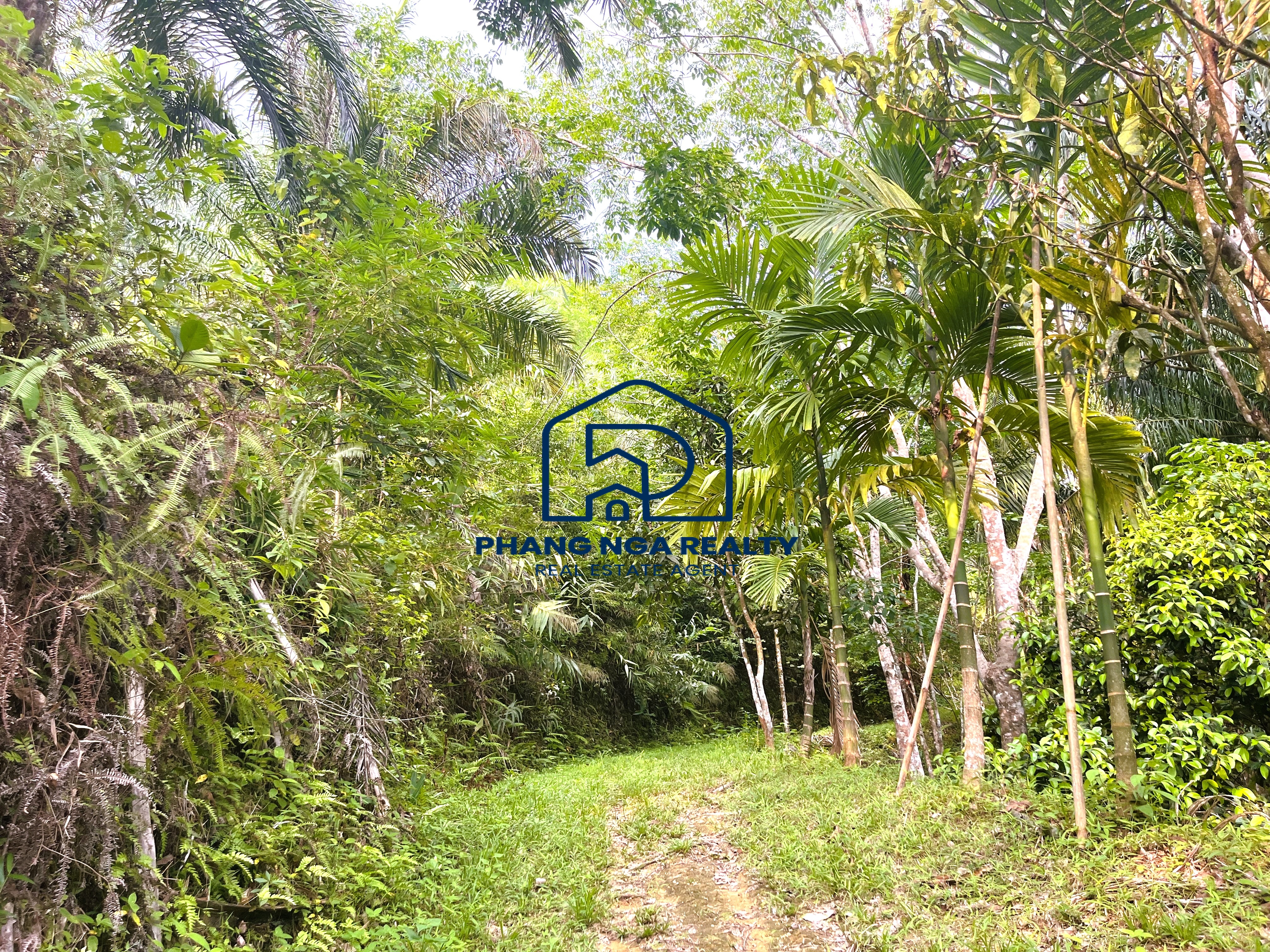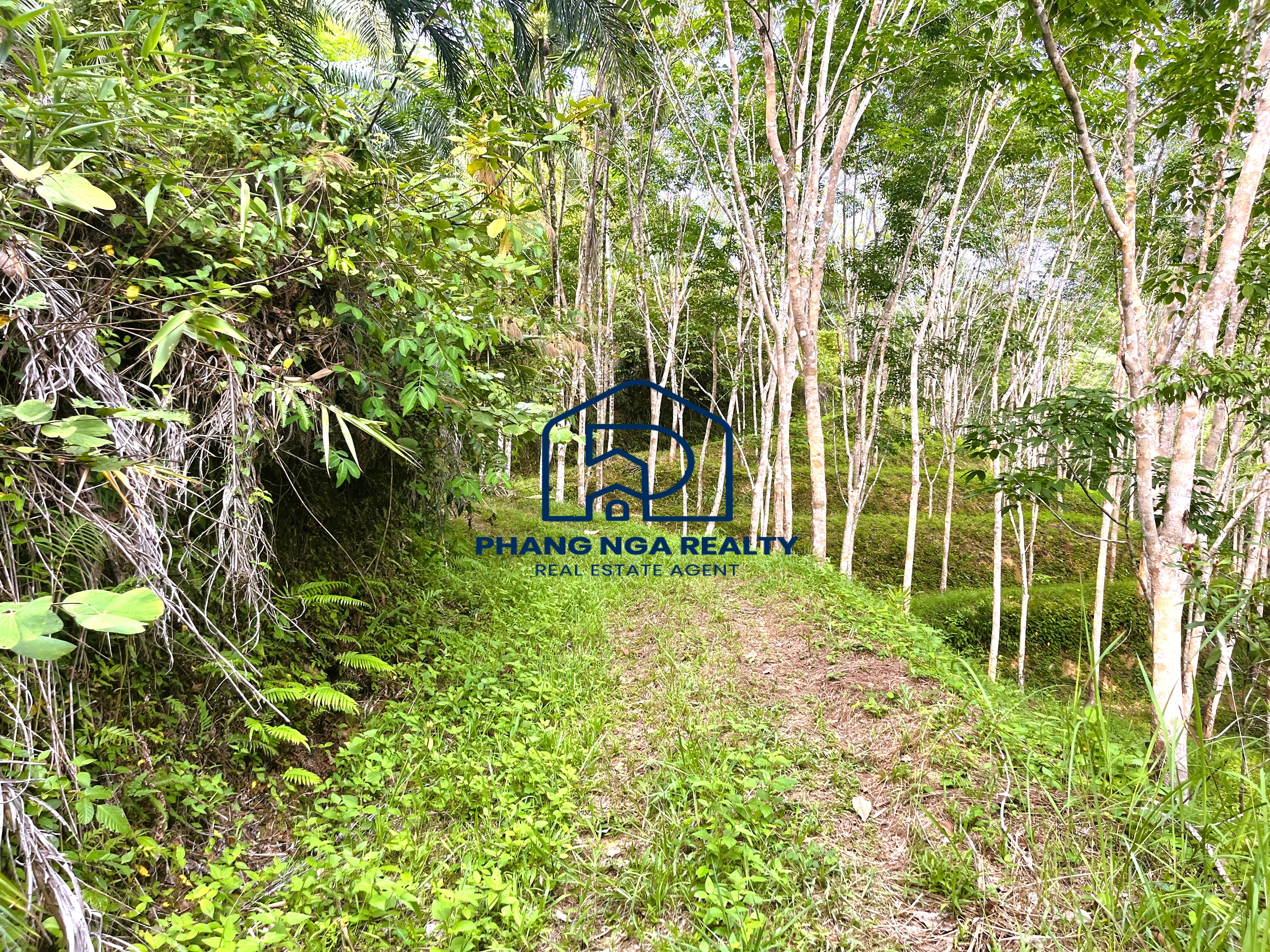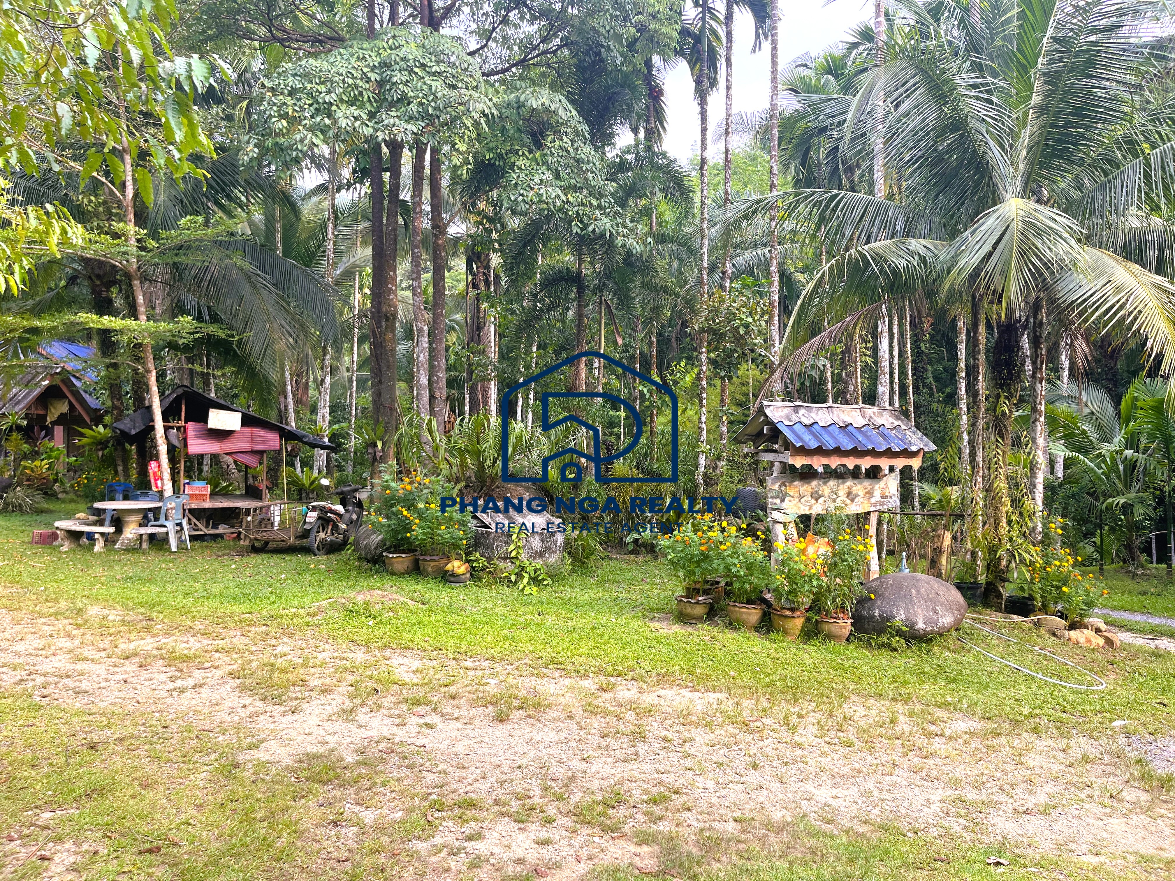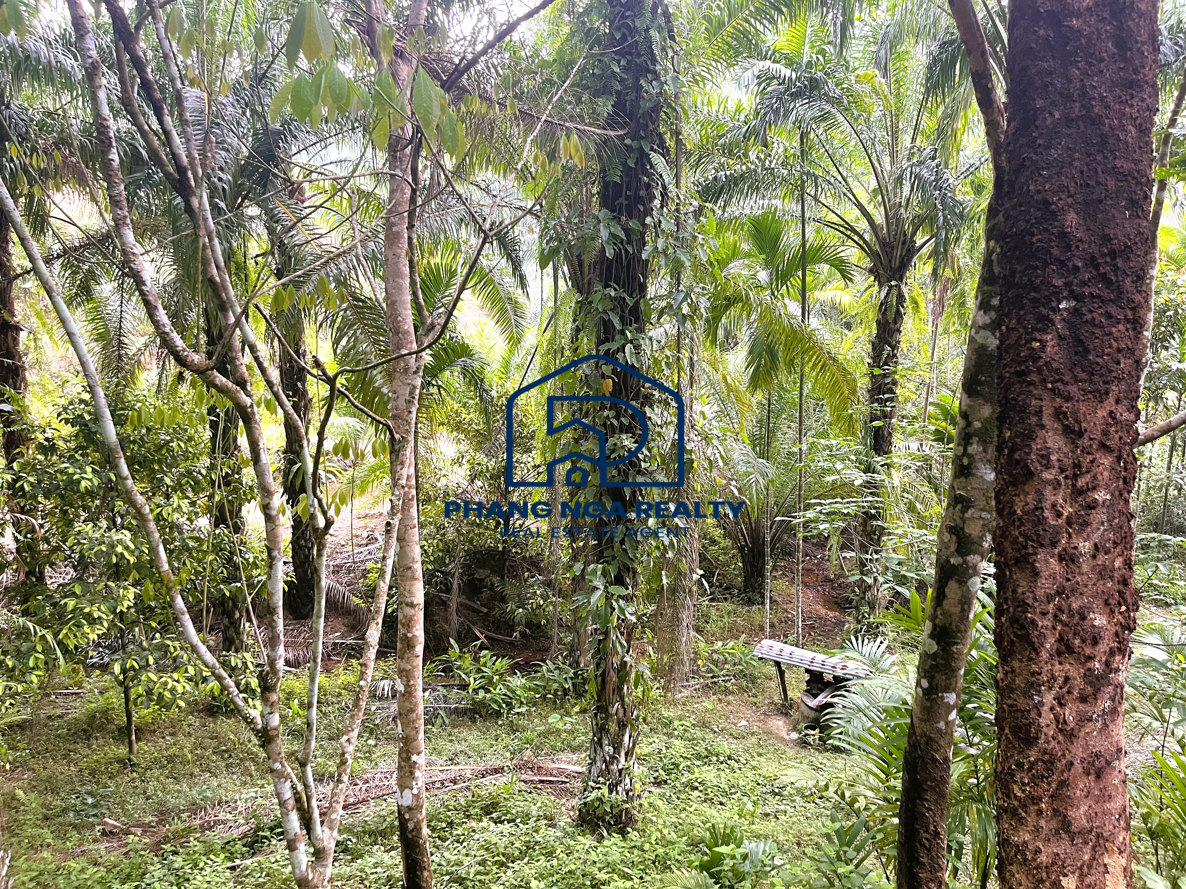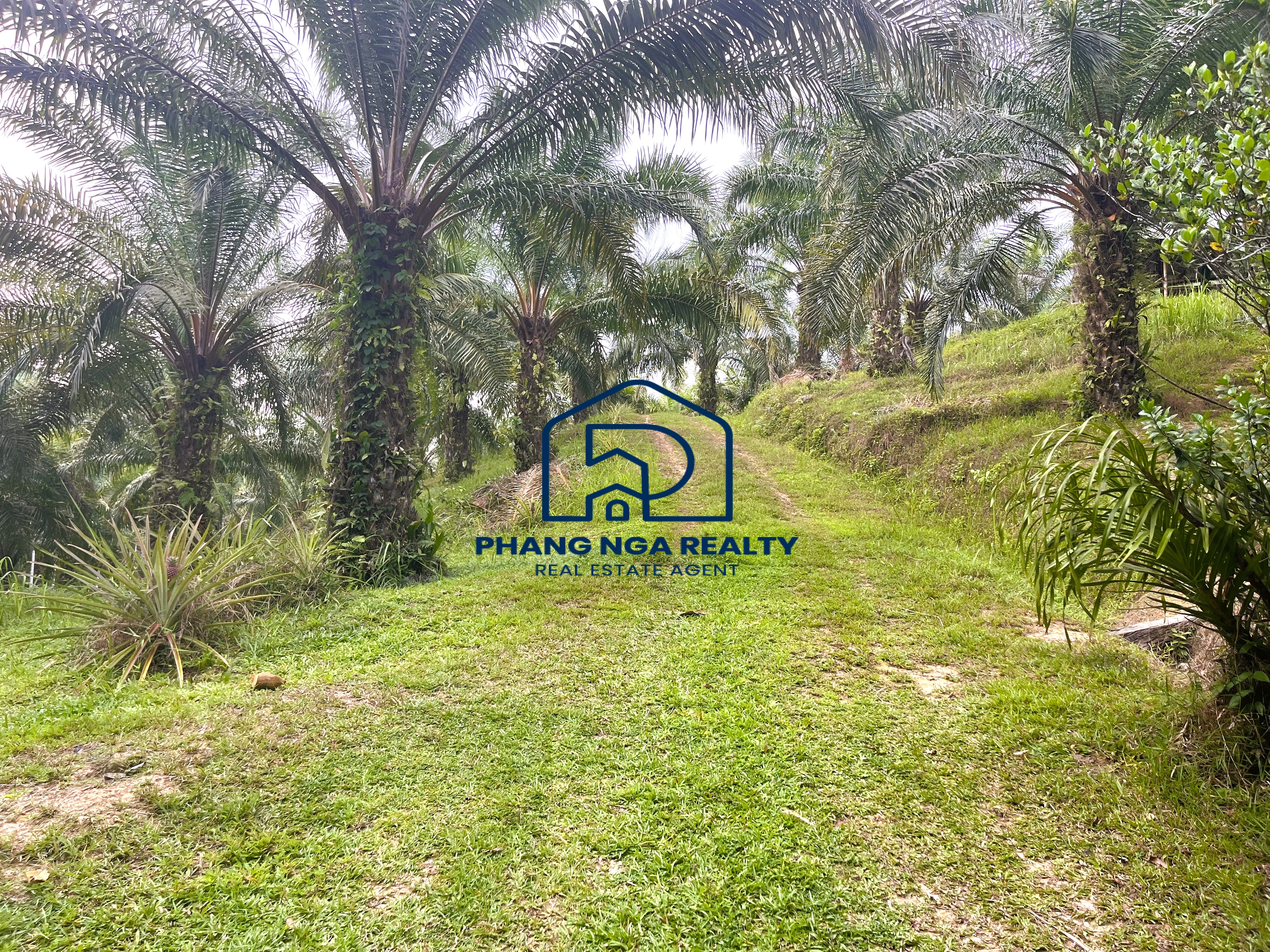 Nearly 25 rai of land with mountain view, farmhouse & public creek for sale in Thai Mueang, Phangnga. An excellent opportunity to own nearly 25 rai of scenic land with a farmhouse, mountain view, and access to a public creek in the peaceful and green surroundings of Thai Mueang, Phangnga. The land features flat and gently sloping areas, with three access roads. It's currently used for rubber plantations (around 3,000 trees) and over 200 palm trees. The property also includes a variety of fruit trees such as mangosteen, langsat, bitter bean (sator), lime, santol, and niang, plus garden vegetables along the fence. A simple farmhouse powered by solar energy is located on-site, with a public creek running along the property’s edge, enhancing the property's natural appeal. With two Chanote title deeds and an additional 2 rai with usufruct documentation, this land is ideal for establishing an organic farm, eco-friendly resort, homestay, or a tranquil private home in beautiful Thai Mueang, Phangnga.