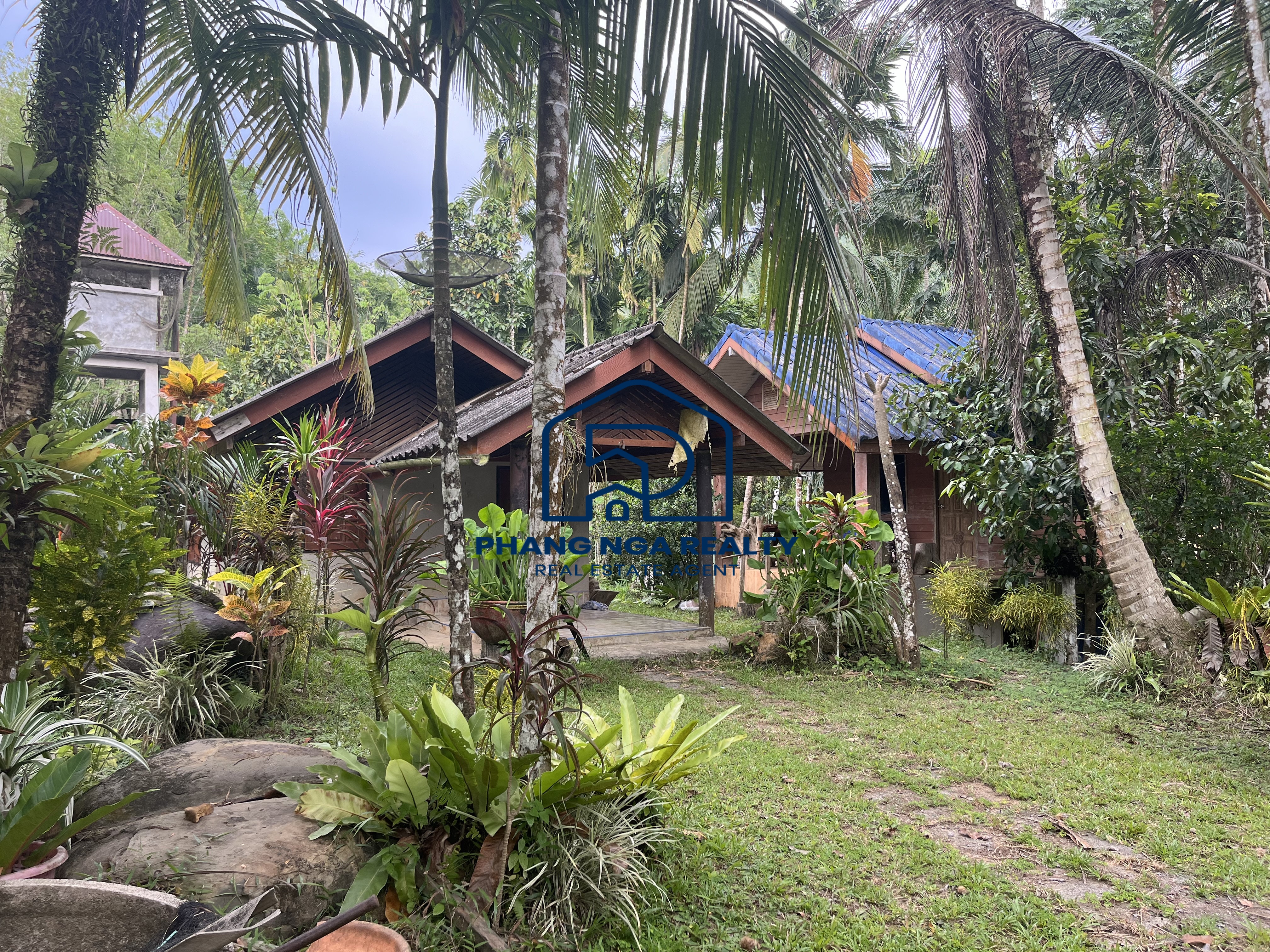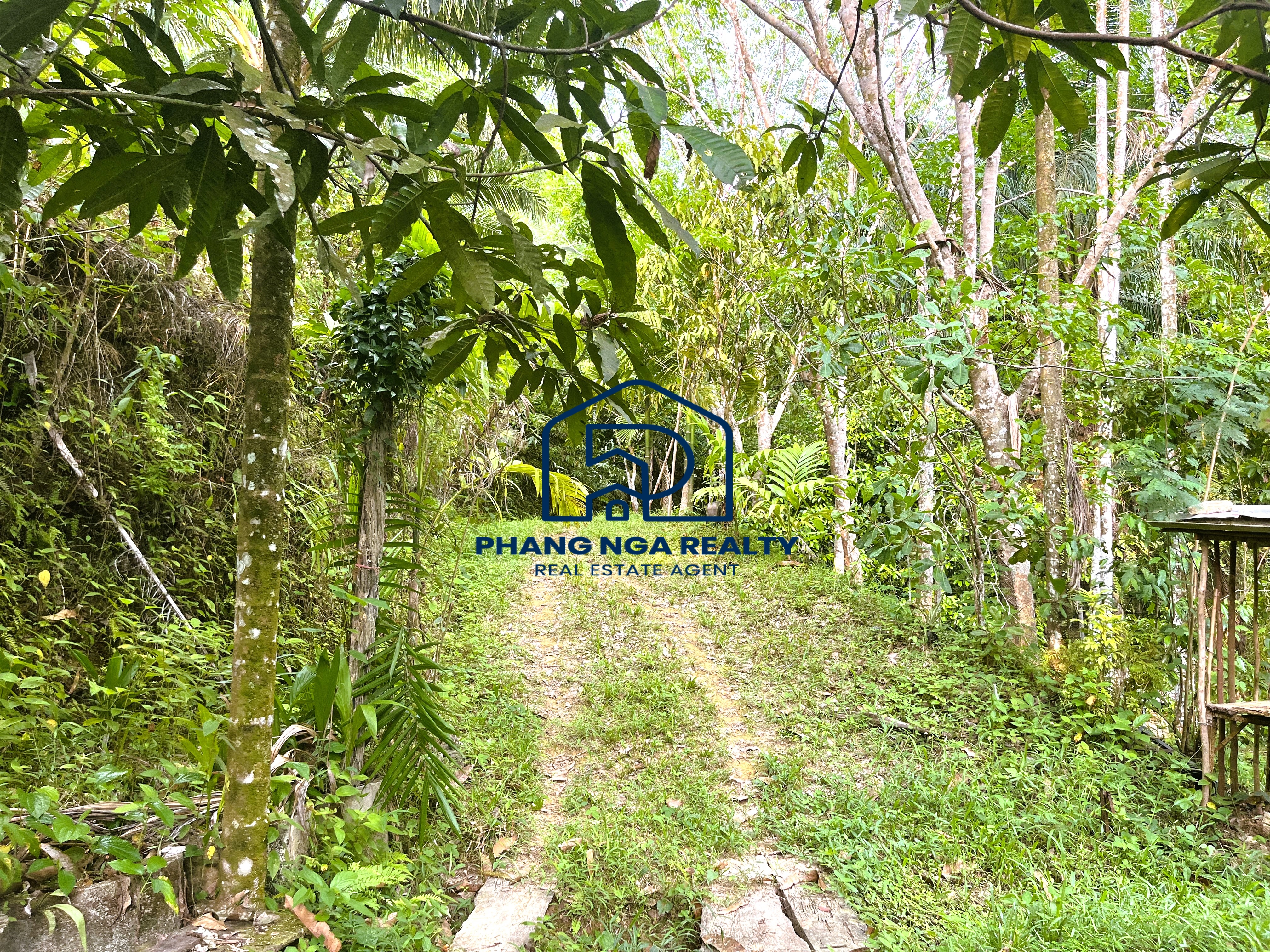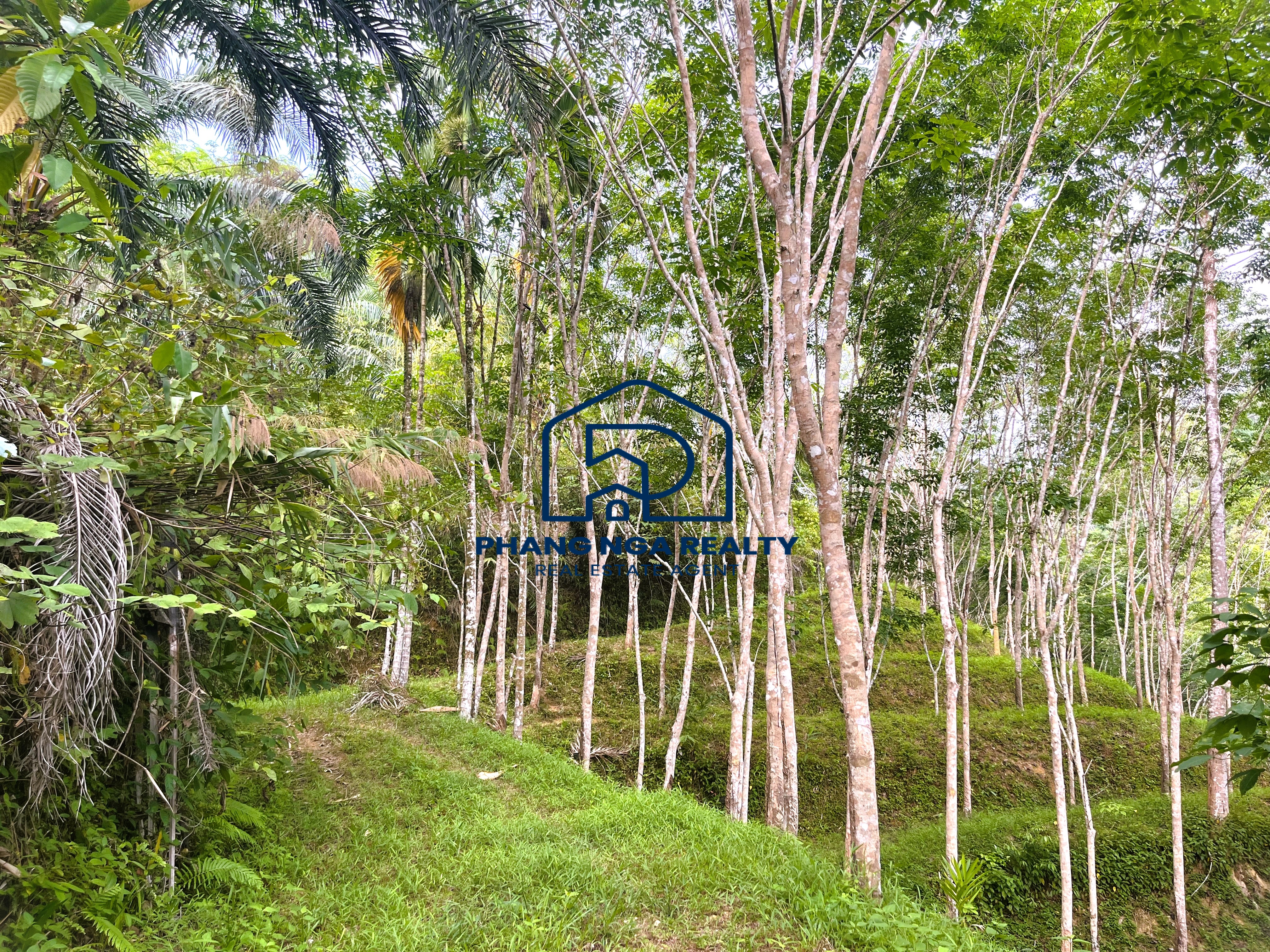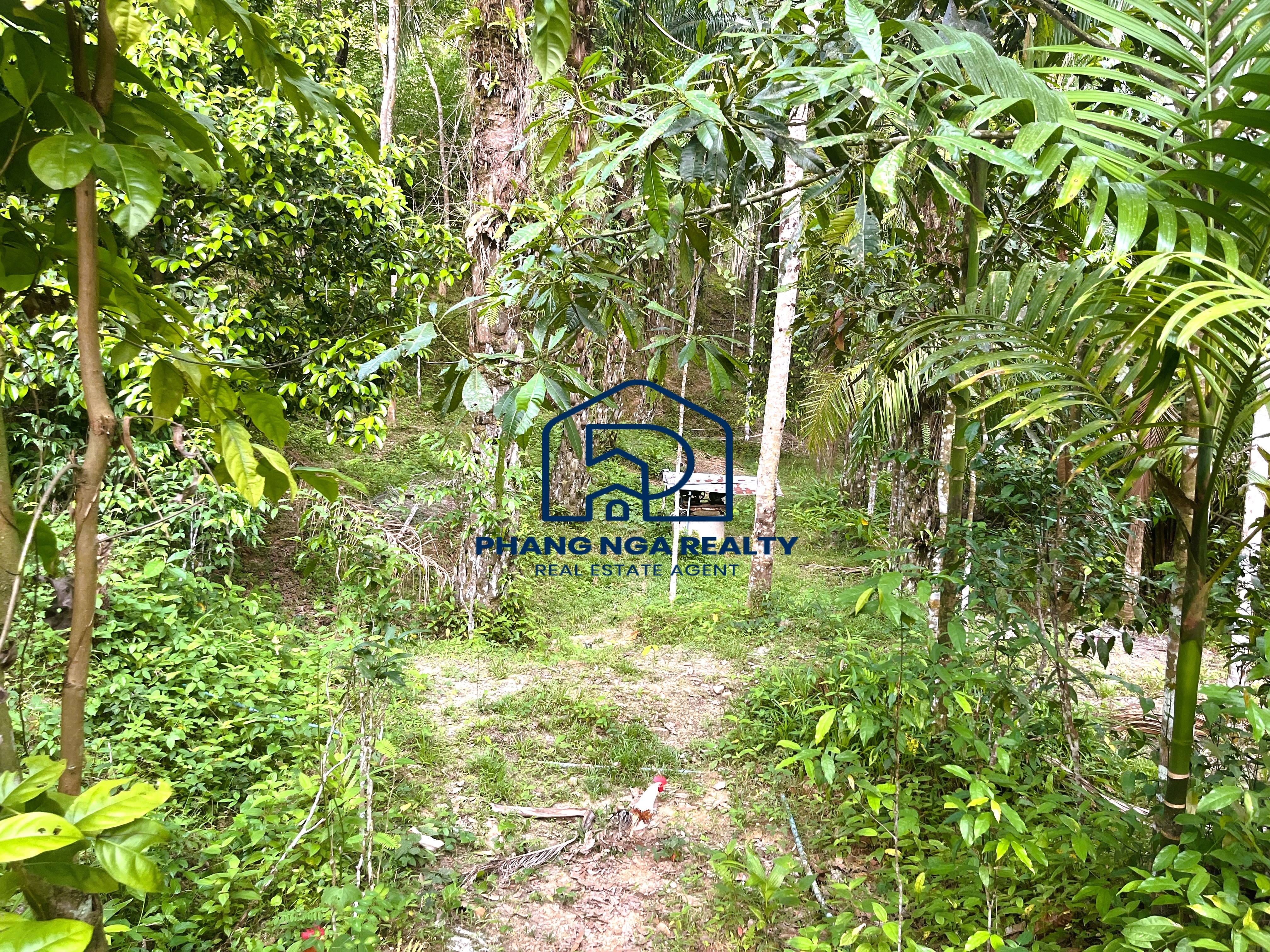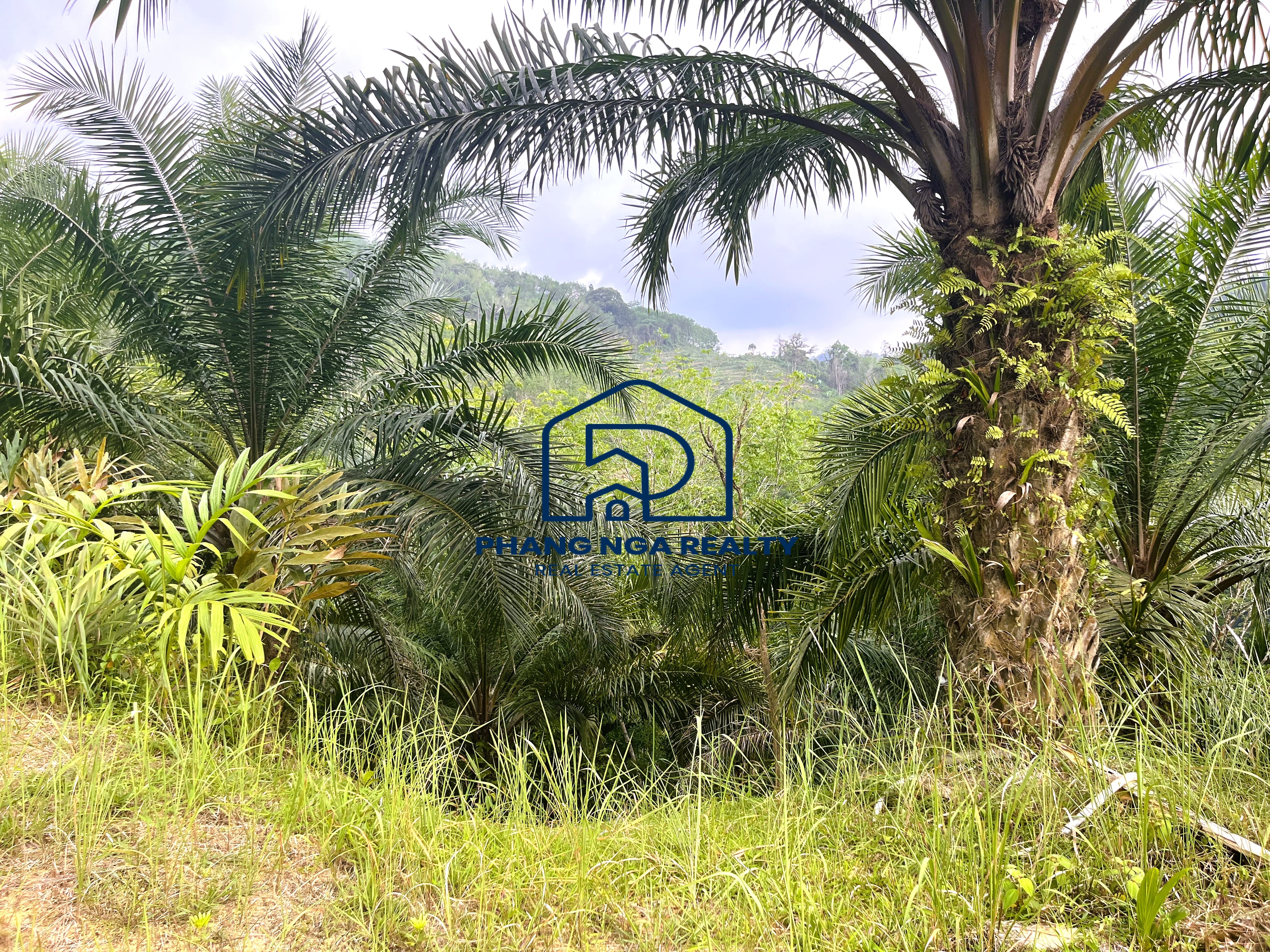 Nearly 25 rai of land with mountain view, farmhouse & public creek for sale in Thai Mueang, Phangnga. An excellent opportunity to own nearly 25 rai of scenic land with a farmhouse, mountain view, and access to a public creek in the peaceful and green surroundings of Thai Mueang, Phangnga. The land features flat and gently sloping areas, with three access roads. It's currently used for rubber plantations (around 3,000 trees) and over 200 palm trees. The property also includes a variety of fruit trees such as mangosteen, langsat, bitter bean (sator), lime, santol, and niang, plus garden vegetables along the fence. A simple farmhouse powered by solar energy is located on-site, with a public creek running along the property’s edge, enhancing the property's natural appeal. With two Chanote title deeds and an additional 2 rai with usufruct documentation, this land is ideal for establishing an organic farm, eco-friendly resort, homestay, or a tranquil private home in beautiful Thai Mueang, Phangnga.