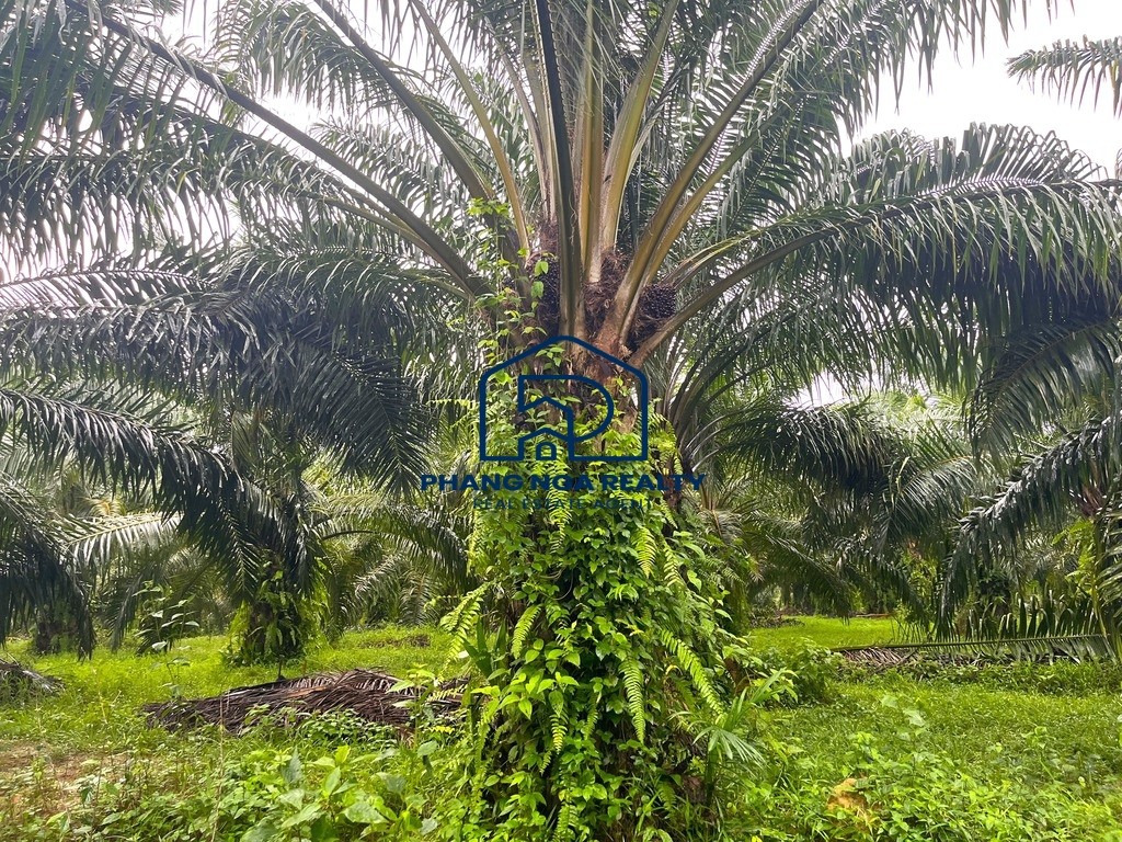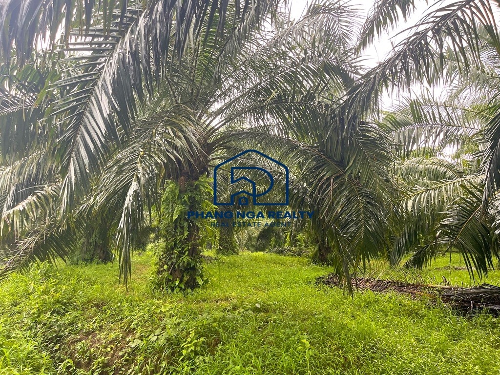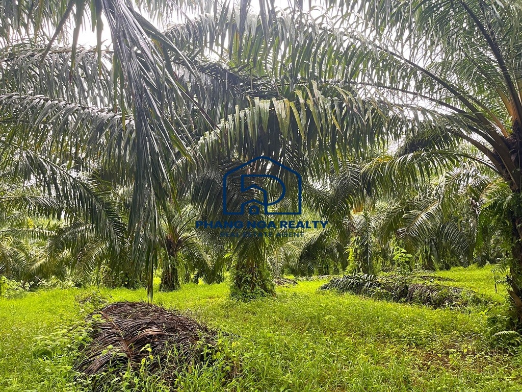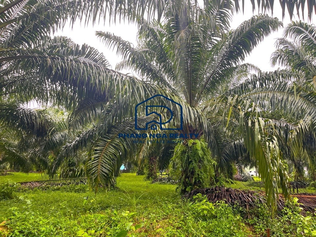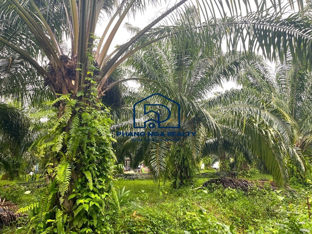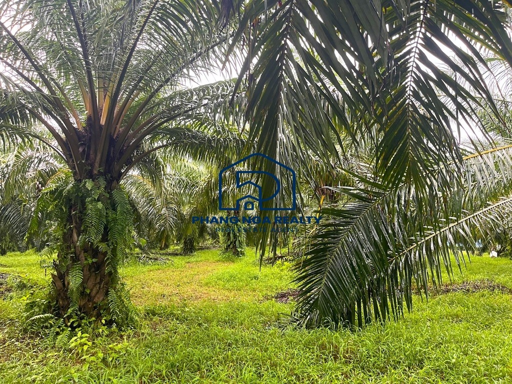 Another plot of land with 3,200.00 s.q.m. is located not far from Laem Pakarang Cape, one of Phang Nga’s most beautiful and tranquil natural tourist destinations. The land is a palm plantation and features a flat, scenic terrain. It is ideal for those seeking a location to build a vacation home, garden house, private villa, resort, or even to continue cultivating palm trees for profit.