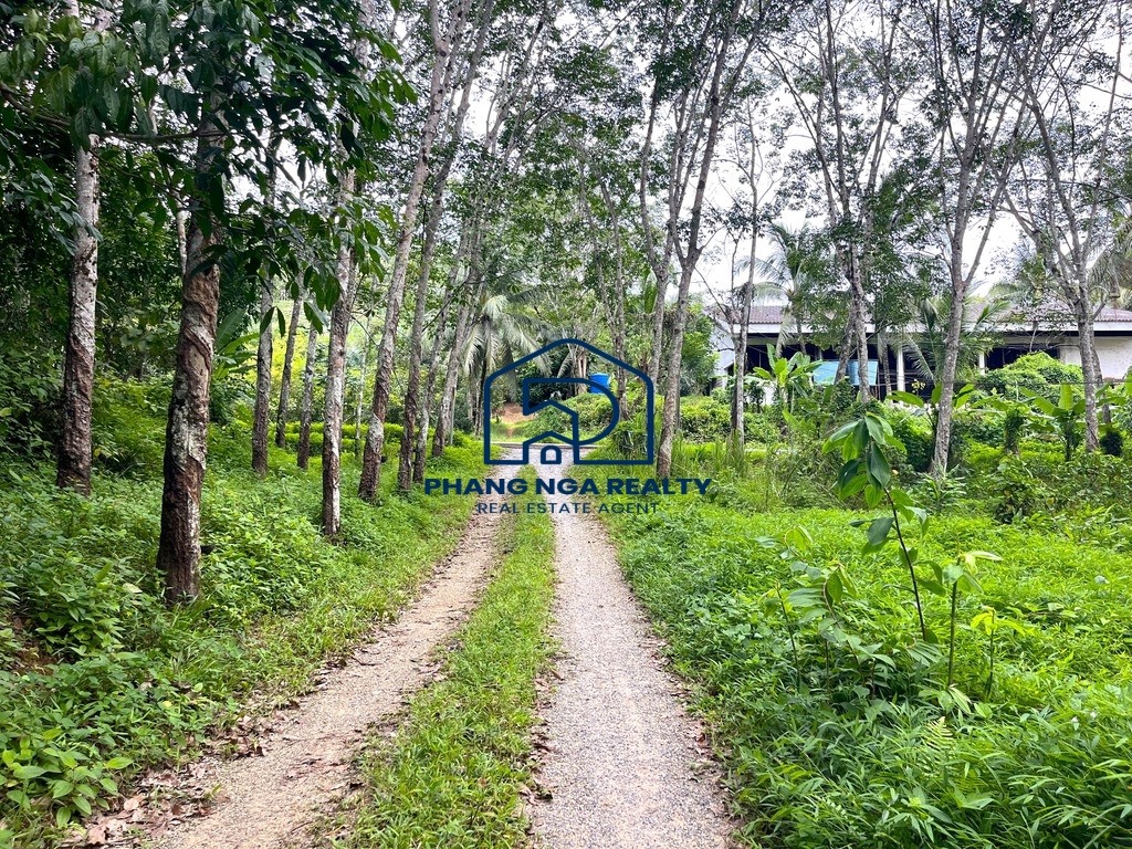 The property features a 20-year-old rubber plantation interspersed with a variety of fruit trees, creating a lush, natural setting ideal for those seeking a peaceful rural lifestyle or a place to develop into a private retreat.