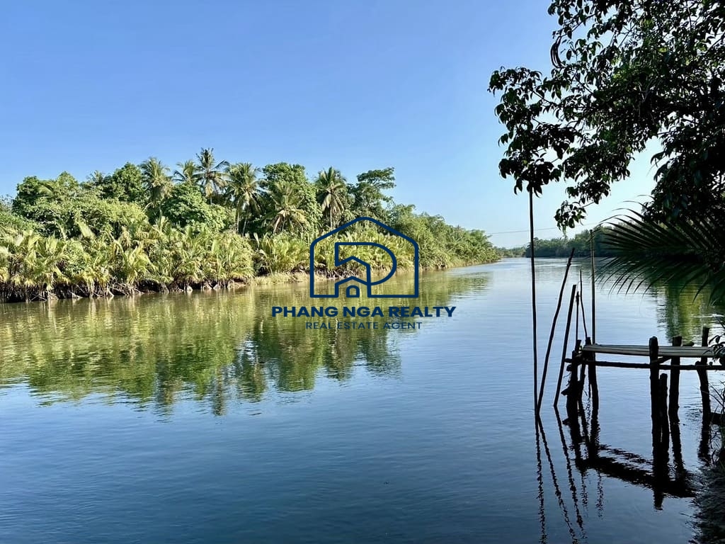 This freehold land (Chanote title deed) covers 7 rai, featuring approximately 85 meters of road frontage and direct access to Takua Pa Canal, offering a serene riverside atmosphere. Perfect for building a private residence, holiday villa, boutique resort, or for peaceful countryside living.