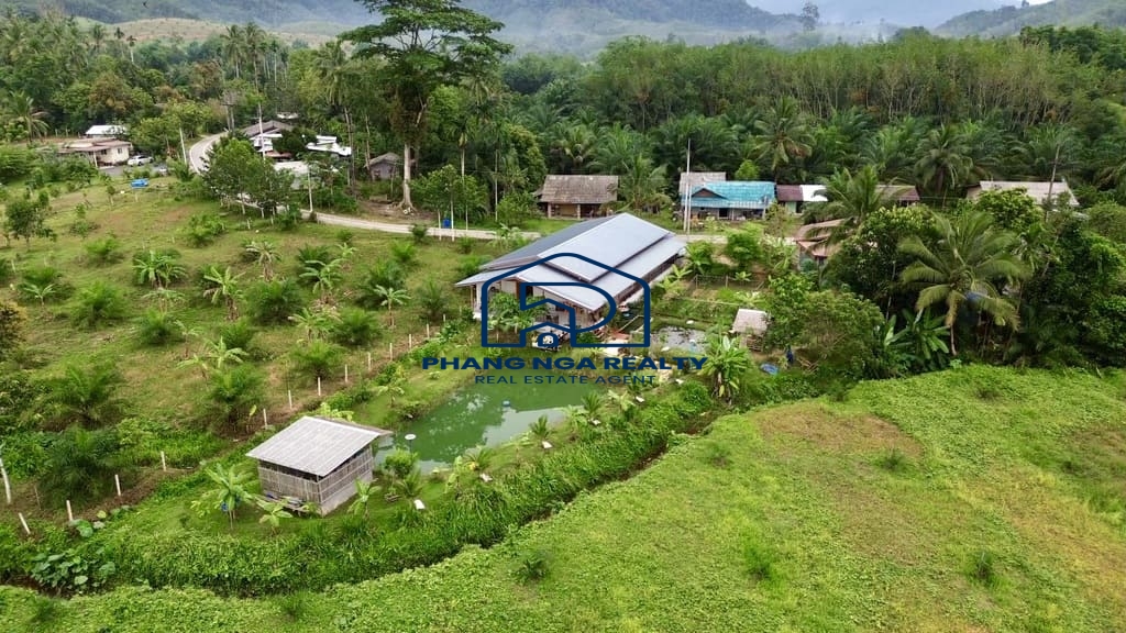 A charming organic farm home on a 1-rai plot is now available for sale, set within a warm, welcoming community and surrounded by lush greenery all day long. The house features 2 bedrooms, 3 bathrooms, a cozy living room, a kitchen, a dining area, and a children’s pool — perfect for families seeking privacy, comfort, and space to enjoy life together.