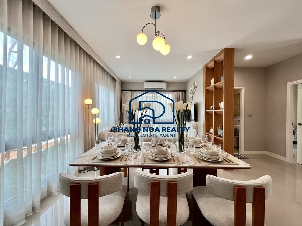This 2-storey detached house for rent offers a peaceful living environment with a mountain view, ideal for long-term residence. The house features 3 bedrooms, 4 bathrooms, 1 multipurpose room, and parking for 2 cars, providing ample space and functionality for comfortable family living.