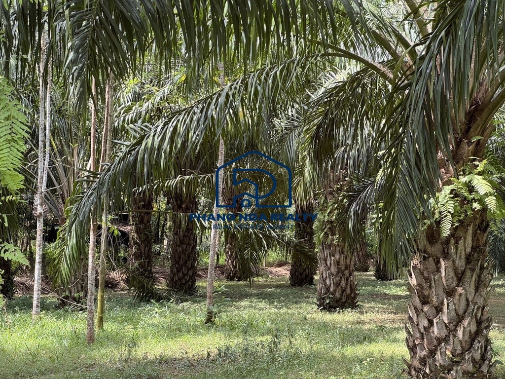 This land for sale offers a peaceful natural setting, ideal for buyers seeking a garden-style property for living or long-term investment. The land is a palm plantation approximately 5–6 years old and is flat, making it easy to develop and plan for future use.
